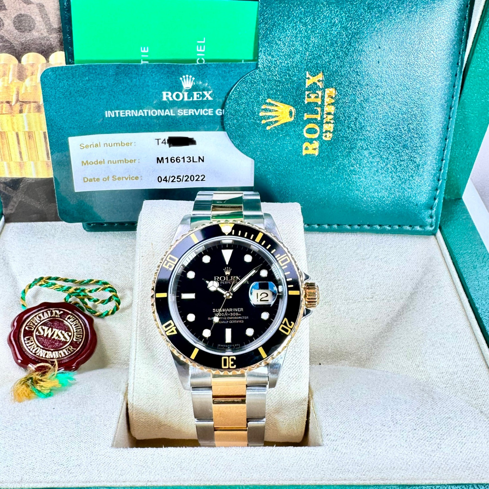 This spectacular timepiece, the Rolex Submariner 16613, is one of the most esteemed watches in the world and stands as a testament to Rolex's unparalleled precision and aesthetic sophistication. Presented in mint condition, this extraordinary piece is not just a watch; it is a robust blend of impressive reliability, visually appealing aesthetics, and technical precision; a fusion that is hard to find within the realm of luxury wristwatches.
