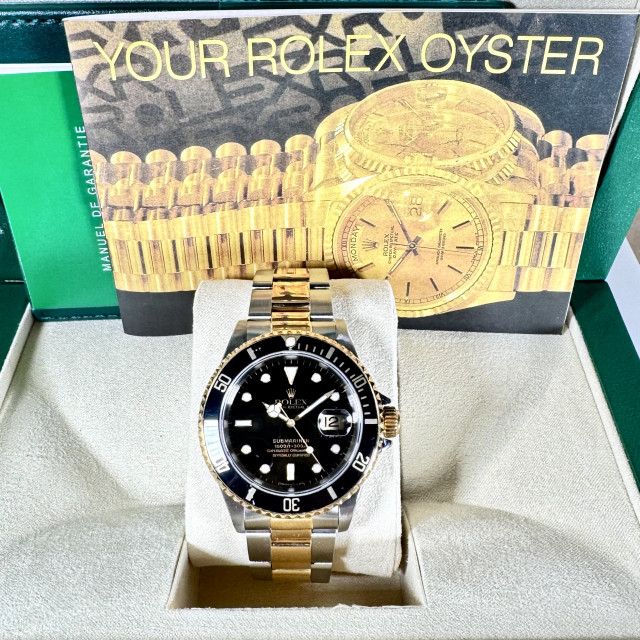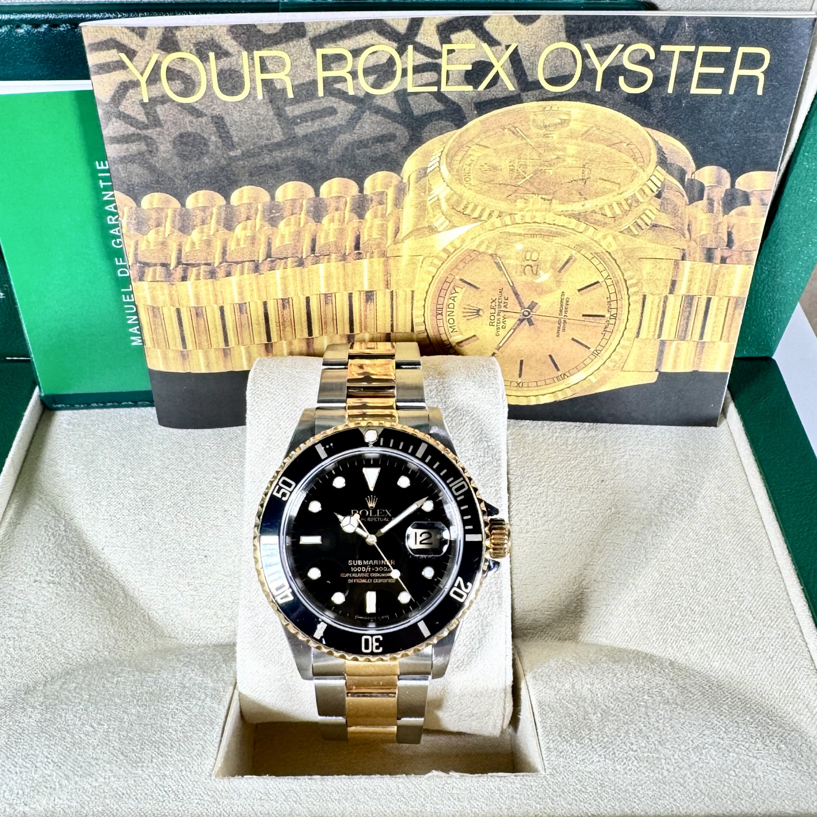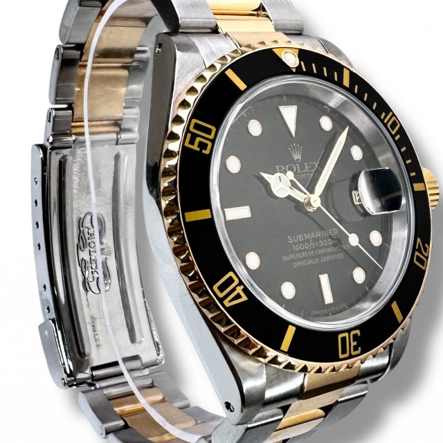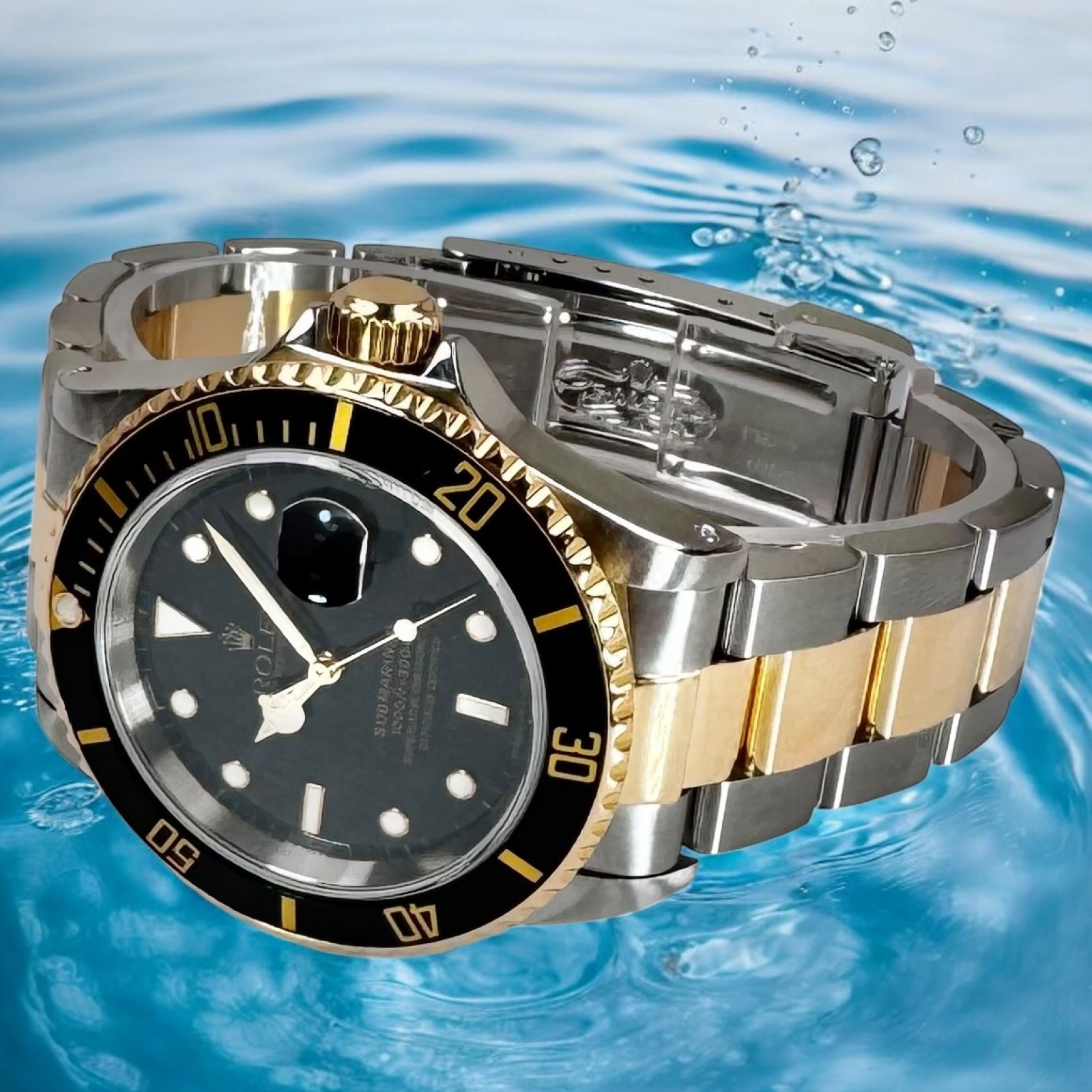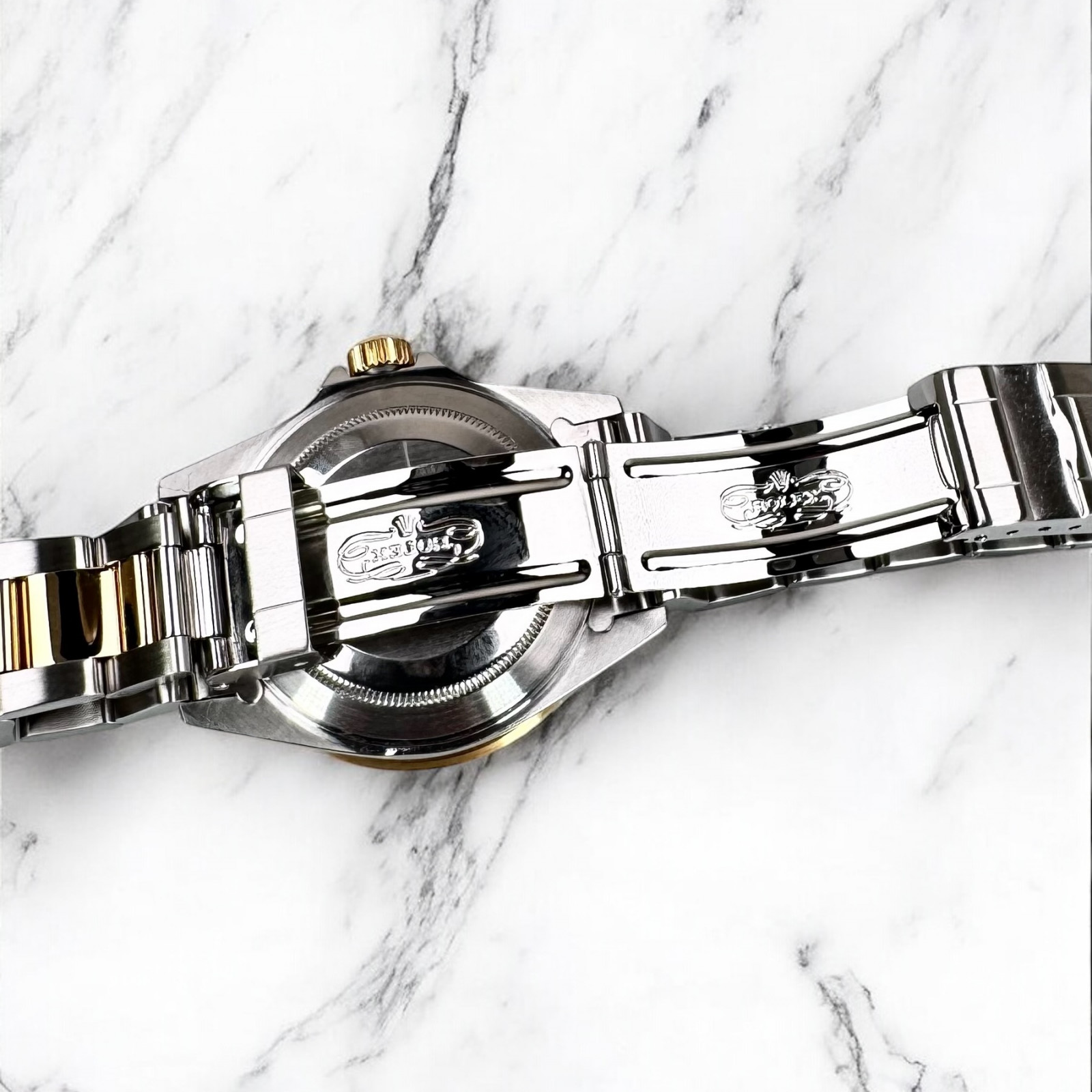 As a matter of extraordinary beauty, this Submariner model features an opulent combination of 18-karat gold and high-grade stainless steel. This luxurious amalgam amplifies both the visual allure and the overall robustness of this timeless creation. Boasting its enduring style, the watch's design is further enhanced with a finely finished black dial, which provides a beautiful and generously proportioned backdrop for the remarkable features of this singular timepiece.