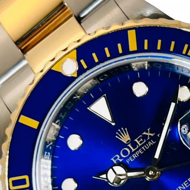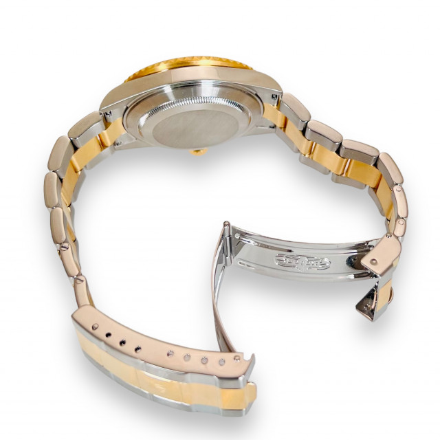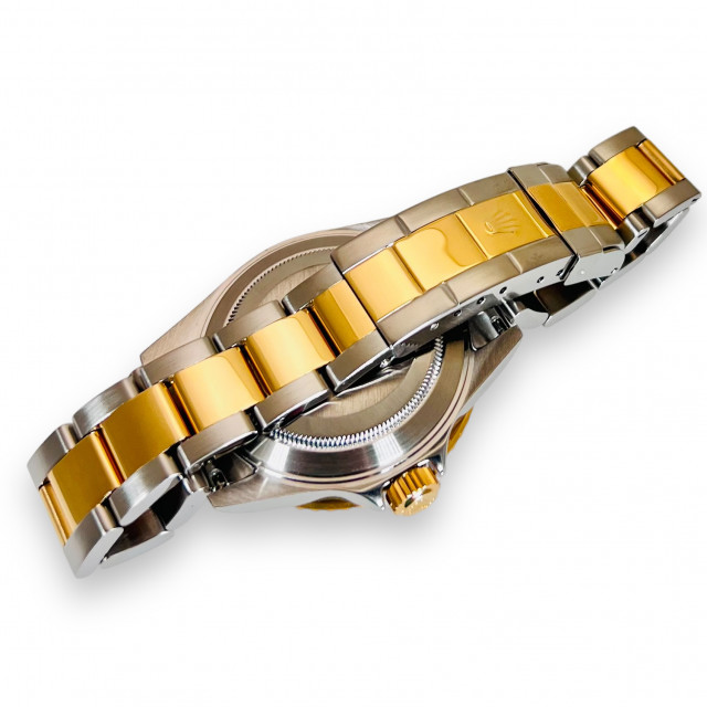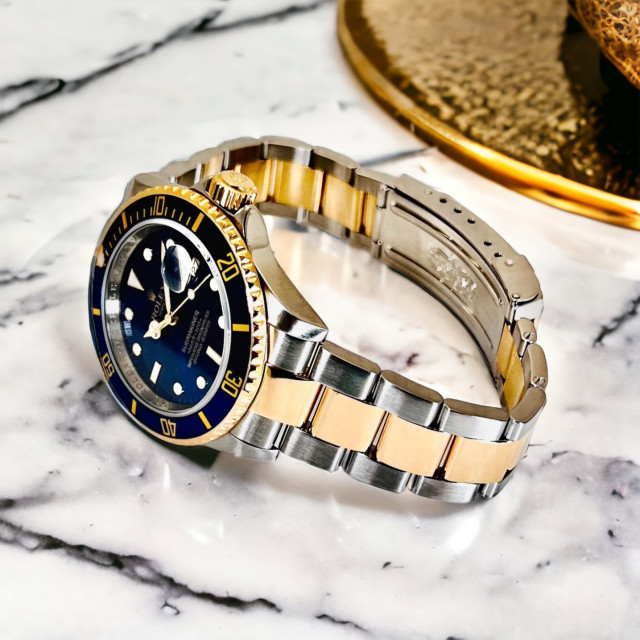 Further accentuating the Submariner's charm is the 18 KT gold unidirectional bezel, giving an opulent touch to this esteemed diver's watch. The masterful blend of gold and stainless steel bears testament to Rolex's exemplary craftsmanship and relentless attention to detail, resulting in an elegant marriage of pragmatism and luxury.