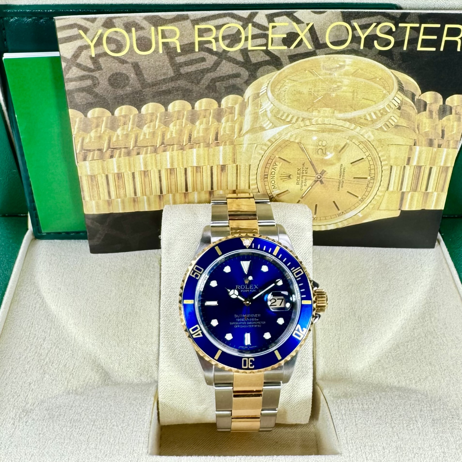 This Rolex Submariner goes beyond a mere accessory—it's an intrepid partner, fit for the most daring of deep-sea explorations, being fully waterproof up to an impressive depth of 1000 feet.