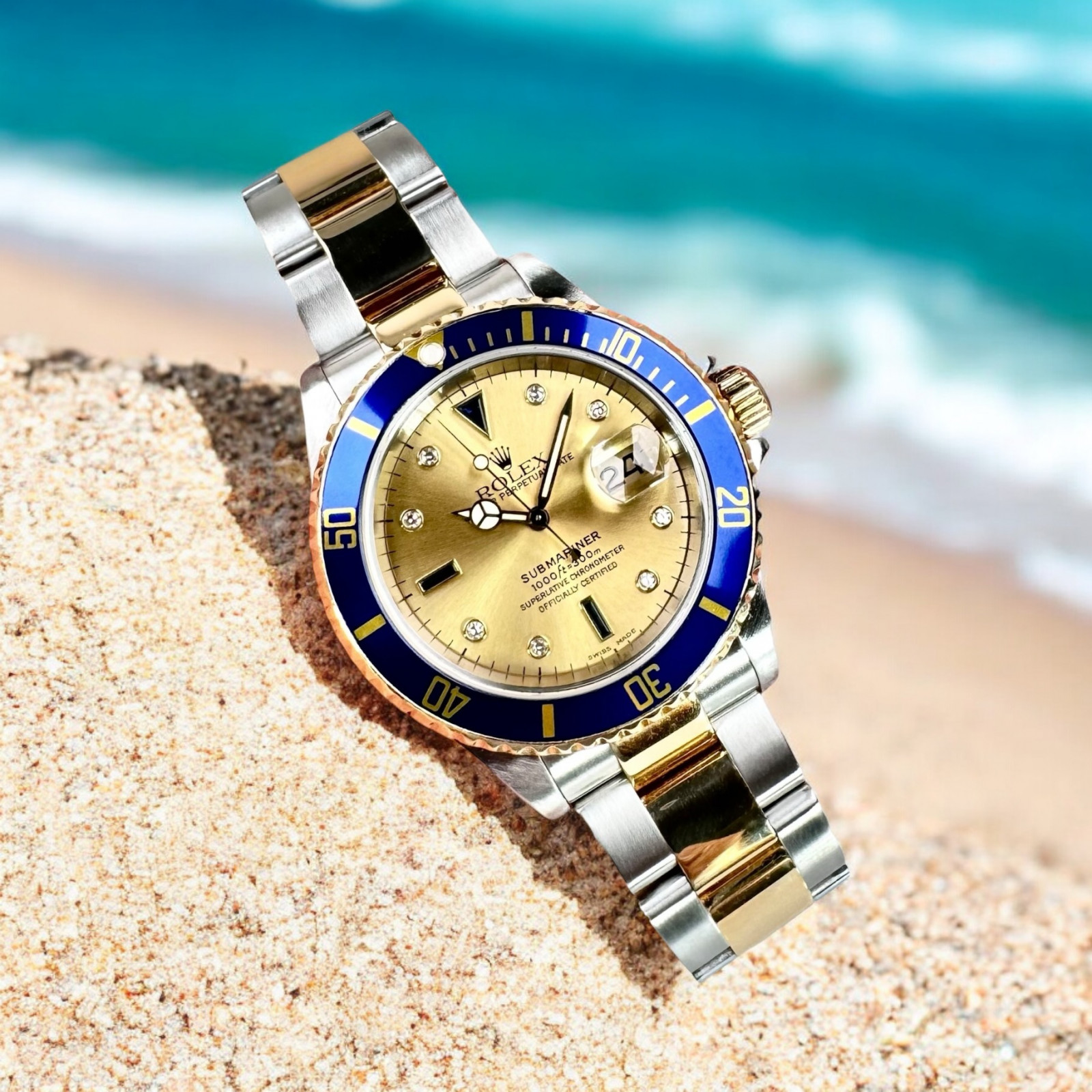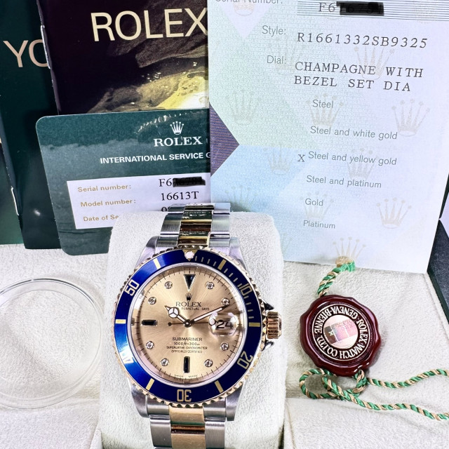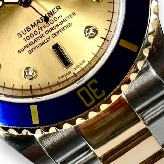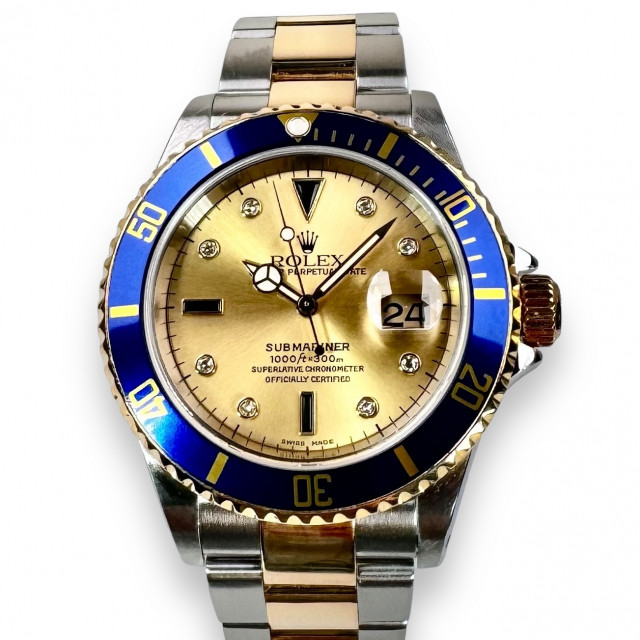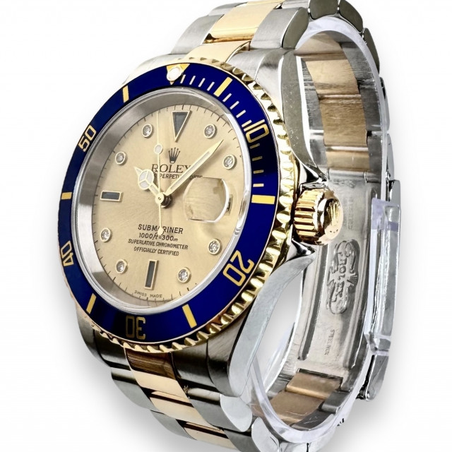 Diamond Rolex Submariner 16613 Champagne Serti Dial