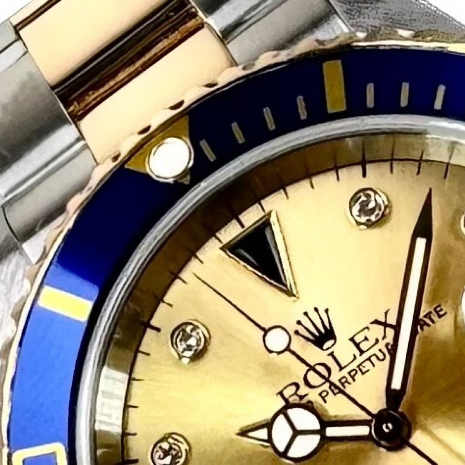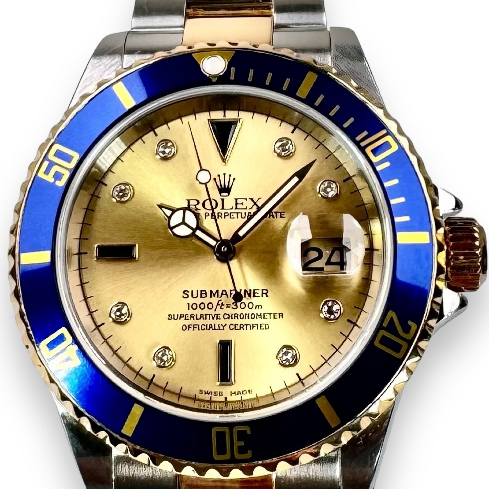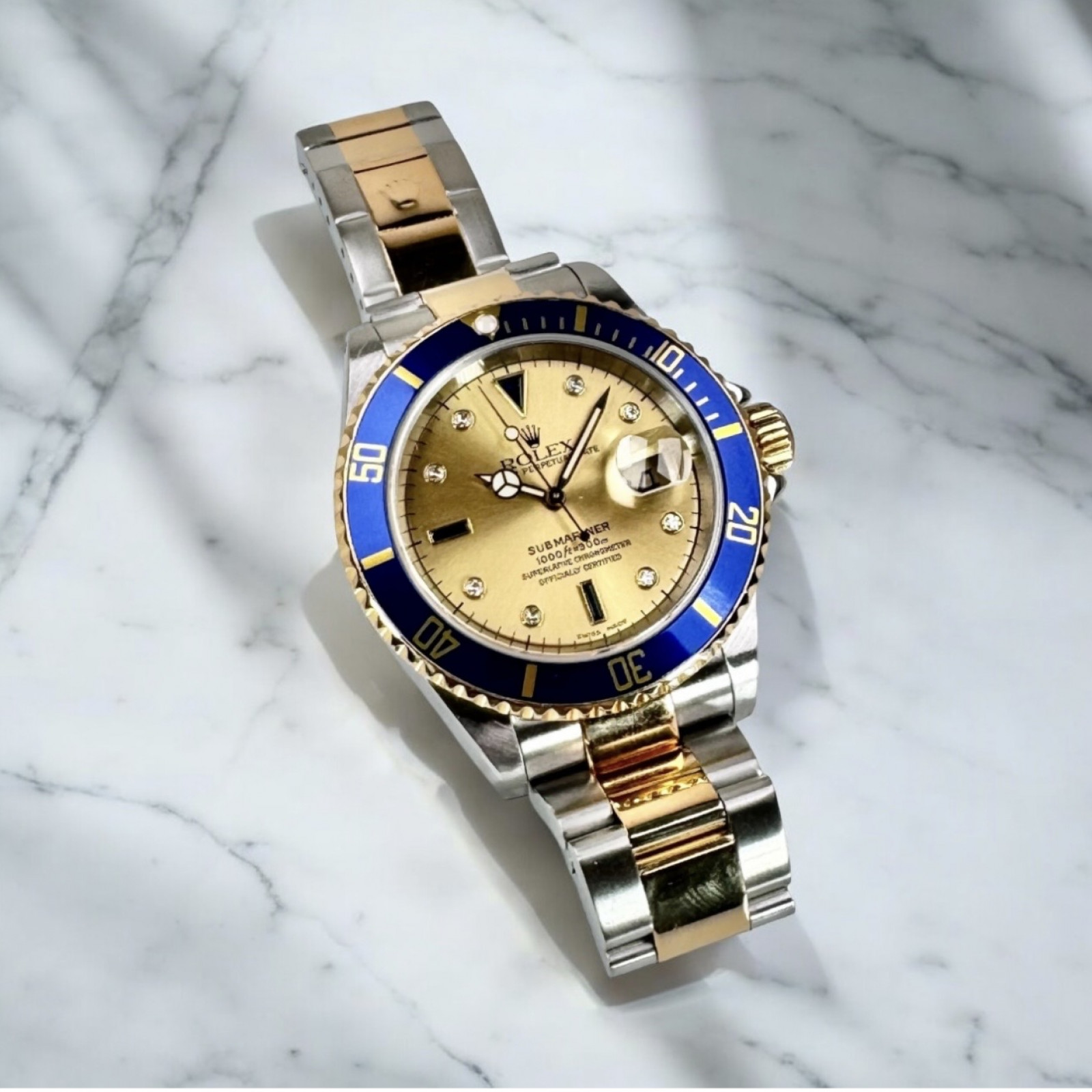 Diamond Rolex Submariner 16613 Champagne Serti Dial
