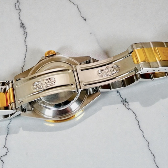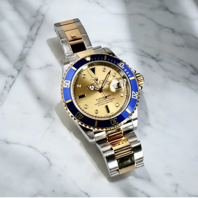 Introducing the captivating and splendidly designed "Rolex Submariner 16613 Serti Diamond & Sapphire Dial" – a remarkable timepiece that entices with an unparalleled convergence of 18 KT Gold and Stainless Steel, flawlessly melded together to achieve supreme craftsmanship. This glittering masterpiece first graced the international stage in 1953, winning the applause of watch aficionados and avid diving buffs globally. Within no time, this splendid Submariner rose to legendary status, surpassing its contenders and establishing a formidable standard in the realm of luxury sports watches.